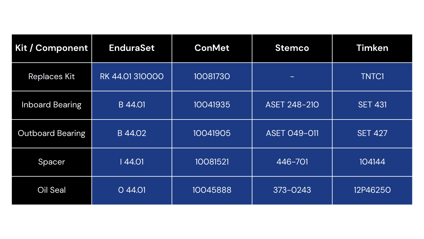 The pre-adjusted design simplifies the installation process, allowing for quick mounting without additional adjustments, which minimizes downtime and enhances operational efficiency. EnduraSet assemblies also feature optimized bearing adjustments to reduce premature wear, resulting in lower maintenance costs and improved resource allocation for fleet operators. Advanced sealing technology protects against contaminants, further extending service life.